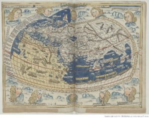 Ptolémée Claude (90-168 après J.-C.) géographe, astronome, astrologue et mathématicien grec propose un système de projection plane de la surface terrestre sphérique : la projection conique arrondie. Il va surtout établir les coordonnées géographiques précises de plus de huit mille lieux, en longueur (longitude) et en largeur (latitude) et divise le monde en sept climats, c’est-à-dire sept zones climatiques parallèles.