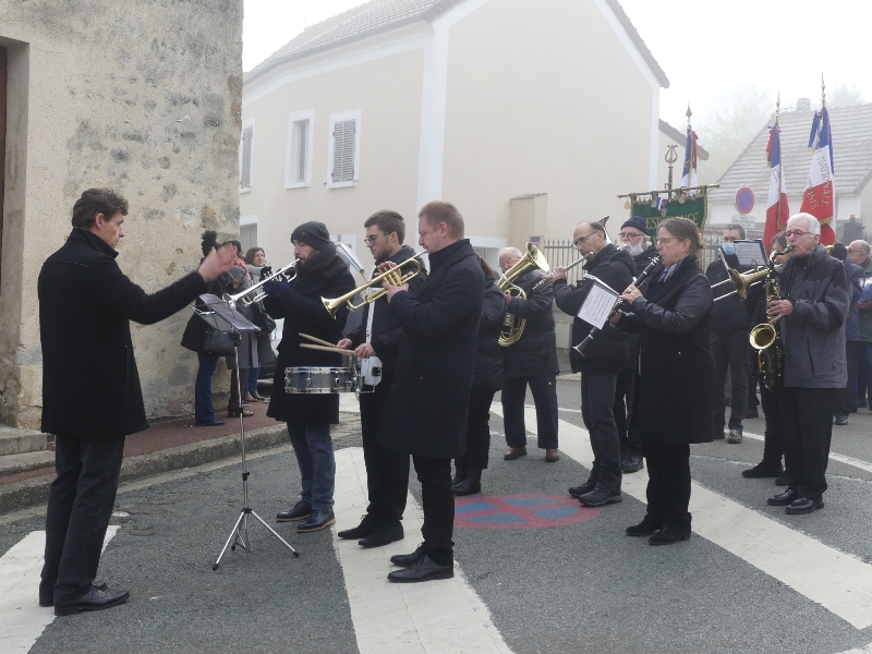 La foule s’est ensuite étoffée pour rejoindre le monument aux morts, suivant la fanfare de l’Espérance de Bouafle.