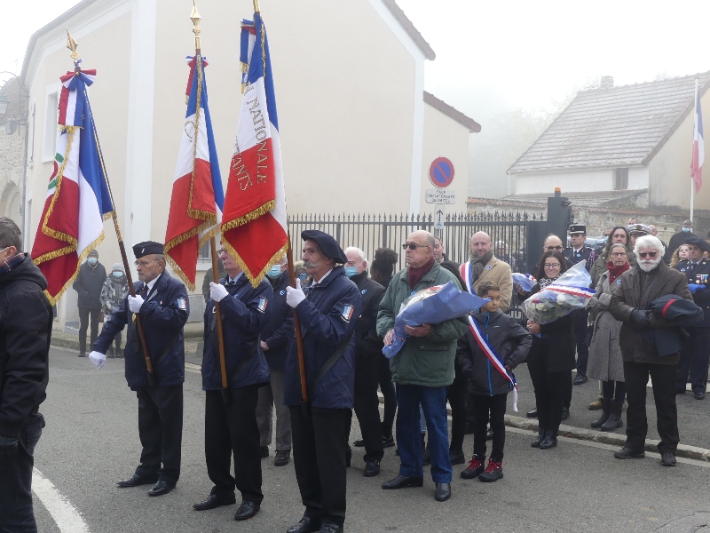 Yann Scotte, maire d’Hardricourt, a ensuite pris la parole rappelant le génie de la France, la résilience du peuple français mais aussi ses défauts qui ne l’ont pas empêché de triompher en 1918 et de reprendre l’Alsace-Lorraine. « … En ce jour, nous fêtons la victoire et la fierté retrouvée mais nous célébrons aussi le devoir de reconnaissance envers ceux qui ont sacrifié leur vie… » Fabrice Pourché a ensuite lu le message de la ministre déléguée auprès de la ministre des Armées chargée de la mémoire et des anciens combattants évoquant aussi, comme Pierre Leveiller l’avait fait précédemment, Hubert Germain, dernier compagnon de la libération décédé en octobre. Les discours se sont terminés par l’appel aux morts, morts pour la France durant la guerre et en opération cette dernière année.