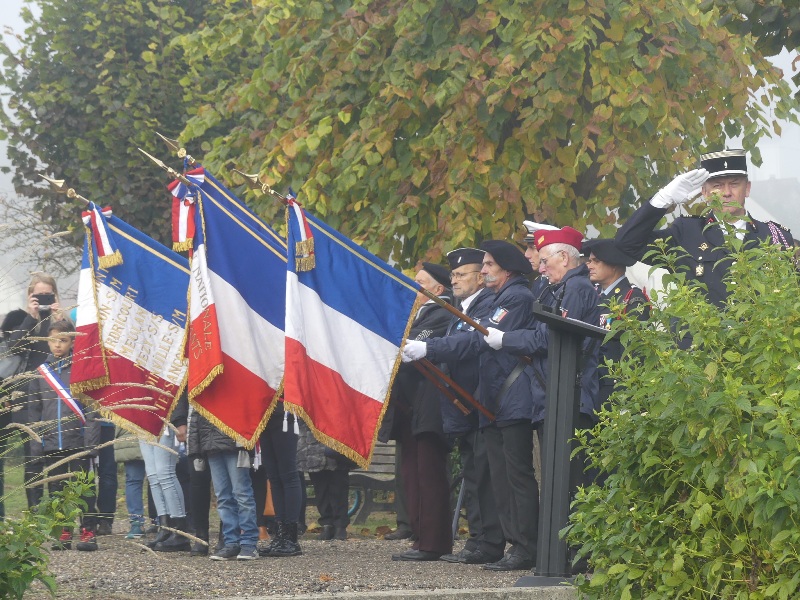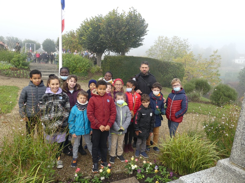 Le monument aux morts a ensuite été fleuri : les enfants des écoles présents ont déposé des roses et chaque représentant d’association accompagné d’un enfant du conseil municipal des enfants a déposé une gerbe : tir à l’arc, Souvenir Français, FNACA, JDC, UNC, conseil départemental, conseil municipal.