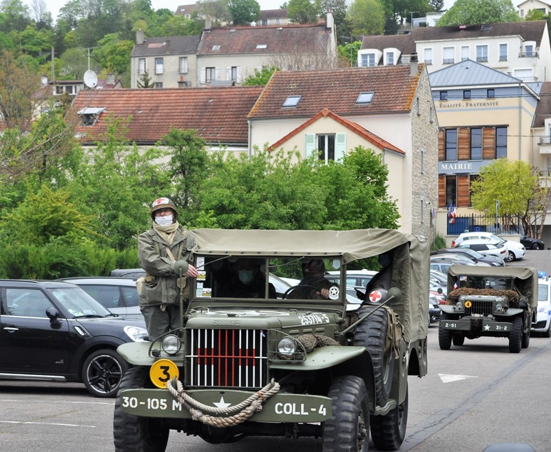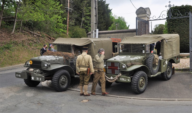 C’est une très bonne idée qu’a eue la municipalité de Vaux : pour commémorer le 8 mai 1945, date de la victoire de la seconde guerre mondiale par les alliés, elle a fait appel à des passionnés de véhicules de cette époque. Amoureux d’histoire et de mécanique, ces bénévoles étaient venus de toute la région pour présenter ces engins restaurés et entretenus avec beaucoup de talent, un grand bravo à eux. Ainsi les Vauxois, étonnés, ont pu voir défiler dans les rues de la cité d’authentiques voitures américaines d’époque, jeep et dodge, chargées de GI’s plus vrais que nature.