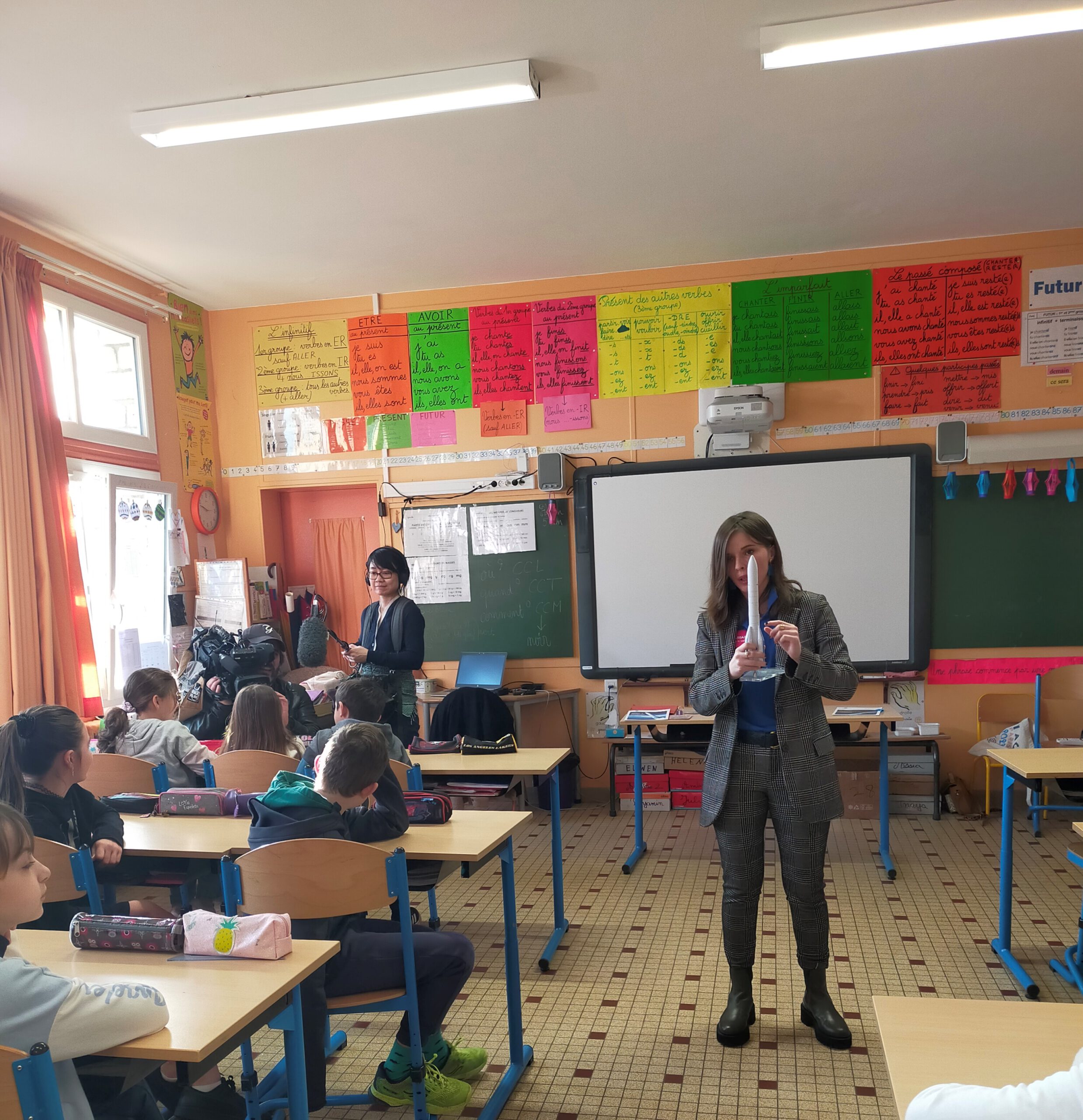 Suite à une intervention sur la mixité scientifique faite dans une école parisienne, nous avons monté un projet dédié aux classes du primaire. Ce projet est préparé avec les enseignants et ce sont les marraines qui démarchent les écoles directement : à Hardricourt où j’avais été sollicitée par les marraines d’ArianeGroup, j’ai pu en parler à l’équipe enseignante facilement, étant