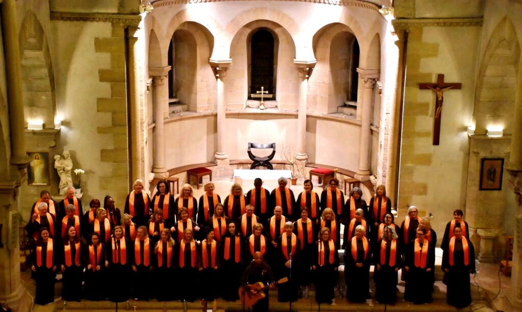 FT : nous chantons le plus souvent dans des églises ; c’est vraiment l’espace le mieux adapté pour ces chants qui sont à la base chrétiens. En plus, ces bâtiments sont souvent majestueux et emplis d’une certaine spiritualité qui vient ajouter du sens à nos chants. Par exemple, nous avons eu la chance d’accompagner la grande organiste Rhoda Scott lors d’un concert dans la collégiale de Mantes-la-Jolie ; c’est pour nous tous un moment inoubliable. Mais nous pouvons nous produire aussi dans des salles des fêtes ou des endroits plus intimes. Nous intervenons de temps en temps dans des EPAHD ou des centres pour personnes handicapées où les pièces ne sont pas très grandes et dans ce cas, nous nous adaptons ; nous pouvons nous produire à partir de dix choristes, ce qui est également le cas pour les cérémonies de mariage ou de baptême. Il nous arrive aussi de jouer au profit d’une association comme le Rotary ou le Lions Club ; dans ce cas une partie de la recette leur est versée.