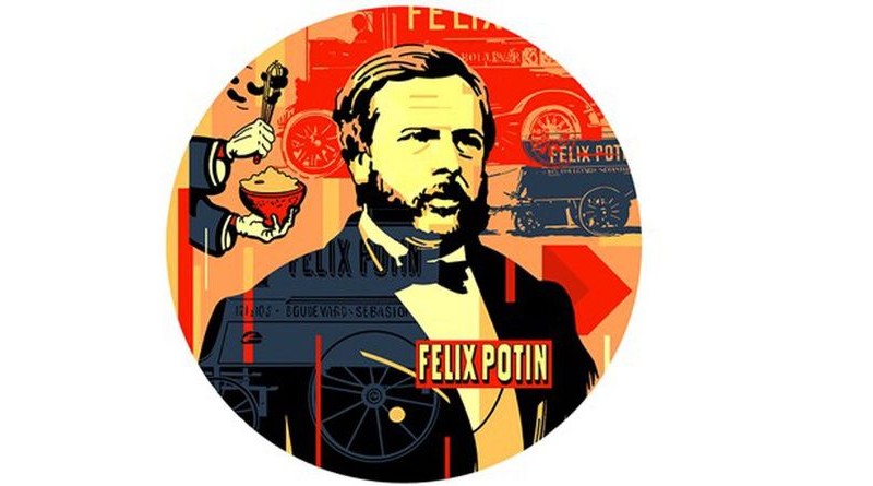 Né le 9 juillet 1820, il y a tout juste deux cents ans, Félix Potin fut un épicier novateur. Fils de cultivateur, il est attiré par le commerce et fait son apprentissage dans plusieurs épiceries. Il a 24 ans quand il loue, en 1844, son premier magasin à Paris 9e au 28, rue Coquenard. Rapidement il ne se contente pas de gérer sa boutique, il veut se démarquer de l’épicerie traditionnelle d’alors. Précurseur du business éthique, il applique quatre principes : vente à bon poids, produits de qualité, marge bénéficiaire réduite et prix affichés en magasin. Afin d’éviter les intermédiaires qui gonflent les prix, de contrôler la qualité de la marchandise, il se donne pour objectif d’internaliser la production, jusqu’à devenir son propre fournisseur. C’est ainsi qu’il implante l’usine Potin porte de la Villette à Paris. Ce site, qui sera malheureusement partiellement détruit en 1918 sous les coups de la grosse Bertha, produit confiserie, biscuiterie anglaise et française, pâtisserie et chocolat, mais également charcuterie et salaison. Une section de l’usine est entièrement dédiée à la production de sucre, indissociable de celle du chocolat.