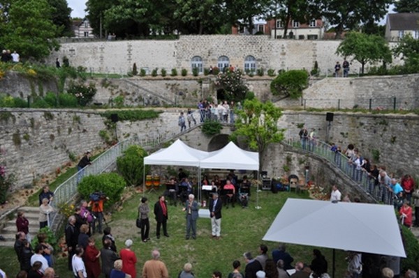 niveaux, ceux-ci offrent au promeneur une grande variété, arbres fruitiers, rosiers, bosquets, fleurs de toutes sortes, larges terrasses offrant une vue remarquable sur Hardricourt et la vallée de la Seine et même une mini-ferme dans laquelle lapins, poules et canards font le bonheur des enfants. Et comme si le bonheur des yeux ne suffisait pas, c’est dans ce cadre de verdure, au milieu des fleurs et des nombreux parterres, que tous ont aussi eu le plaisir d’entendre les orchestres locaux, « l’OVMY » et son crooner Jean-Jacques de Launay et « les concerts de Meulan », tous deux de très grande qualité.