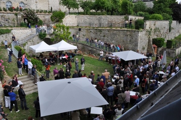 Après deux années de travaux, le domaine Berson est maintenant opérationnel. Son inauguration, qui avait été retardée pour des raisons météorologiques bien compréhensibles, a attiré la grande foule, à la fois heureuse de se retrouver dans ces magnifiques jardins en terrasses et curieuse de découvrir le résultat de cette restauration. Eh bien, on peut dire que leurs espoirs n’ont pas été déçus ; tous ont pu apprécier au cours de la visite, la nouvelle médiathèque que certains connaissaient déjà, les grandes salles du deuxième étage qui seront bientôt mises à la disposition des associations, celles du premier destinées à l’accueil d’expositions et surtout les splendides caves voutées. Au nombre de quatre, ces caveaux, taillés dans une très belle pierre claire, se suivent en enfilade et offrent une magnifique perspective. On peut déjà imaginer de romantiques soirées cabaret à la lueur d’une bougie ou encore un concert intime de musique douce…
