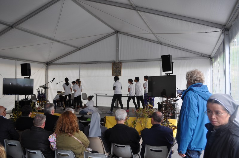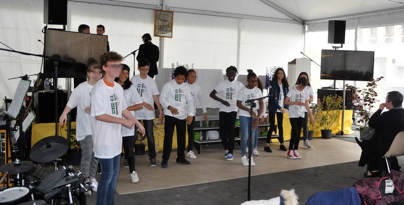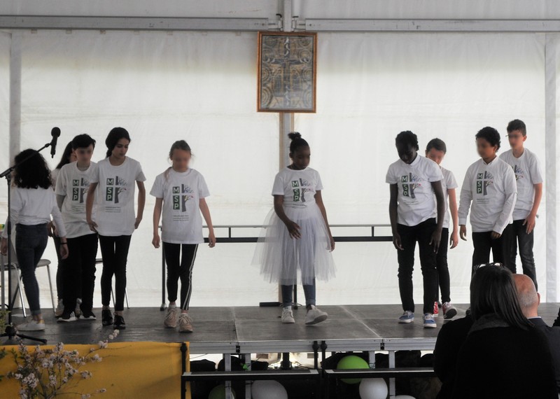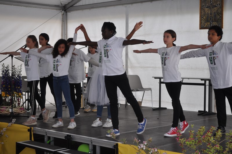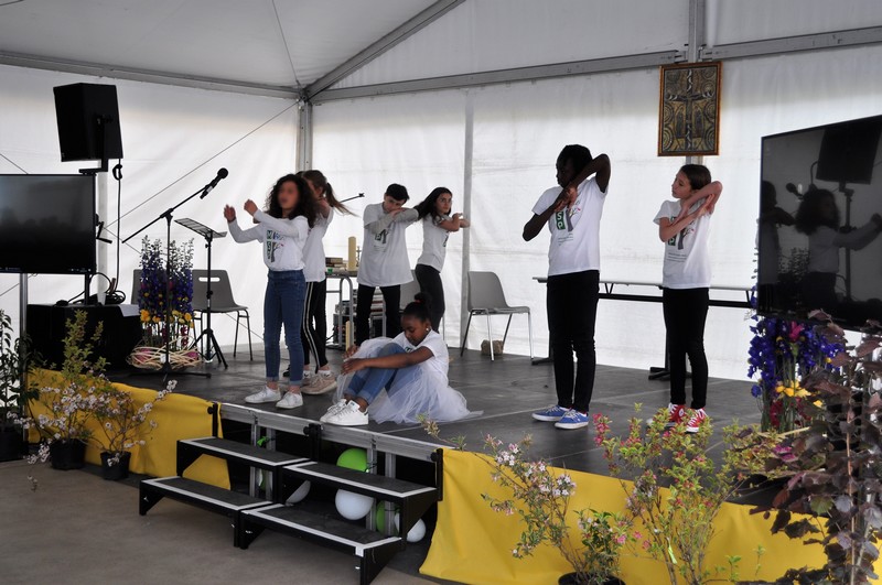 A la fin de la messe, très recueillie, au cours de laquelle les fidèles ont pu apprécier la qualité des jeunes musiciens, violon, violoncelle, synthétiseur, batterie et flûte traversière, quelques jeunes élèves du collège nous ont proposé une chorégraphie très originale sur un chant d’amour très enlevé, une prestation appréciée par tous.