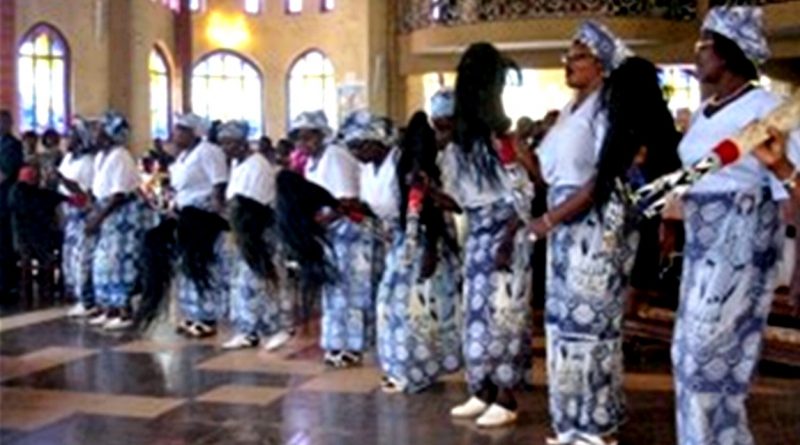 Photo : Une chorégraphie en pleine messe au Cameroun par l’Association des Femmes Catholiques.