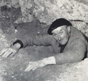 Pendant quelques années, il se fait oublier mais demande les autorisations nécessaires pour faire des fouilles dans ce lieu classé. C’est seulement début 1944, alors que le domaine est occupé par l’armée allemande et que les visites sont suspendues, qu’il commence à creuser. Nuit après nuit, muni seulement d’une pelle, pioche, baladeuse, panier d’osier et d’un vieux treuil, il creuse clandestinement dans un puits rebouché. Son trou a maintenant la hauteur d’une tour de six étages et là, il trouve une excavation latérale ; il s’y faufile mais elle s’écroule sur lui. Pris au piège, une jambe brisée, il réussit à sortir et à remonter cm par cm, agrippé à sa corde à nœuds.