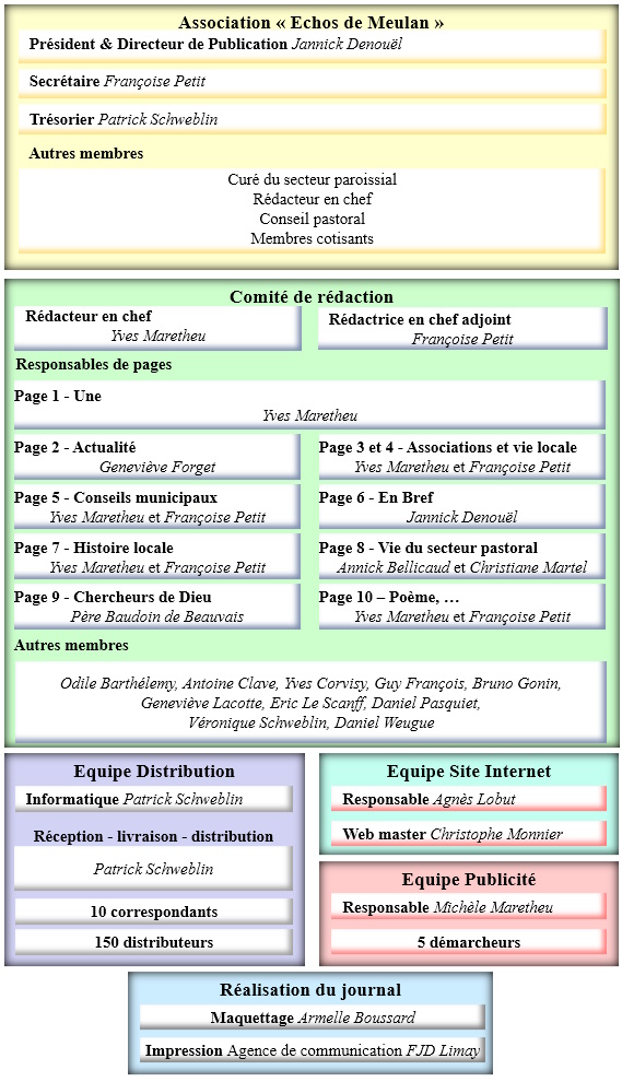 Enfin, le journal n’existerait pas sans le support de l’association « Les Echos de Meulan-Hardricourt » avec les postes clés de directeur de publication et de trésorier.