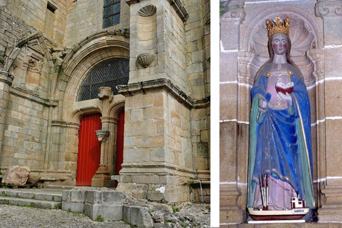 Quelque peu oubliée maintenant d’autant que les faits de son existence relèvent surtout de la légende, sainte Avoye (ou Avé, Aure, Aurée selon les lieux) est considérée, dit Dom Lobineau, moine et historien breton du XVIIe siècle, comme une compagne de sainte Ursule. Des jésuites du XVIIe siècle précisent qu’Avoye est née en Sicile au début du IIIe siècle, d’un père sicilien nommé Quintien, idolâtre et d’une mère baptisée originaire de Bretagne, nommée Gérasine. Avoye a huit frères et sœurs. La maman réussit à convertir son époux à la religion chrétienne. Avoye, cependant, surpasse tous les autres enfants par sa ferveur ! Elle est aussi la plus belle, d’une beauté qui touche à la perfection. Or dès son jeune âge, elle décide de se consacrer à Dieu. Dans sa candeur, elle le prie de la rendre laide afin de l’aider à rester fidèle à son vœu. Comme cette prière ne reçoit pas l’agrément du ciel, elle envisage de vivre cachée, hors du monde mais à la mort de son père, sa mère veut la marier avec un petit roi de Grande-Bretagne auquel elle se refusera. Et c’est durant ce voyage que les Huns massacrèrent sainte Ursule et tant d’autres. Avoye en sortit saine et sauve, et s’enfuit solitaire dans la région de Boulogne. Mais là, elle fut captive d’un chef barbare qui voulut la prendre pour épouse ; enfermée dans une tour crénelée, elle fut alimentée de pain et d’eau par un ange qui la secourait par l’ouverture grillagée.