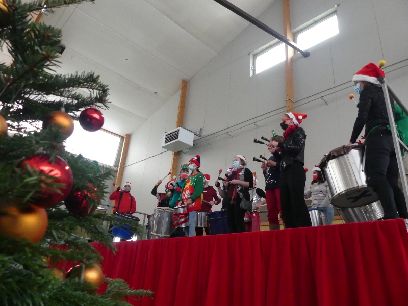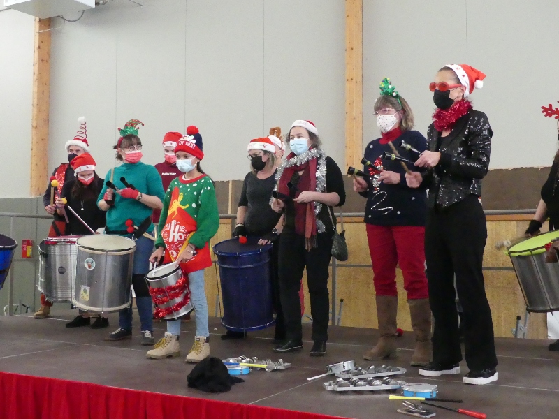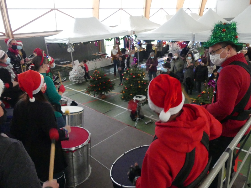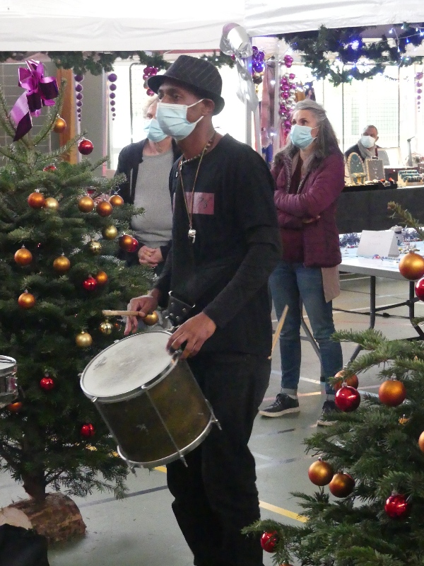 A Hardricourt au marché de Noël, il y avait de très jolis stands artisanaux, en particulier deux stands de potières venues en voisines, l’une de Gaillon, l’autre de Condécourt, mais aussi des produits du terroir, des savons et bougies parfumées, de jolis albums photos prêts à remplir, des chapeaux, écharpes et bonnets bien chauds, des bijoux et décorations de saison… Il y avait aussi une démonstration fracassante de batucada (percussions brésiliennes).