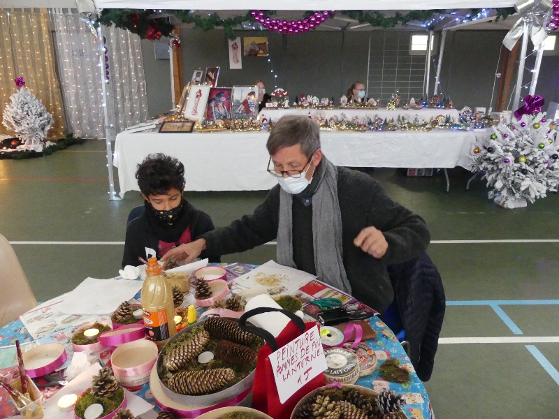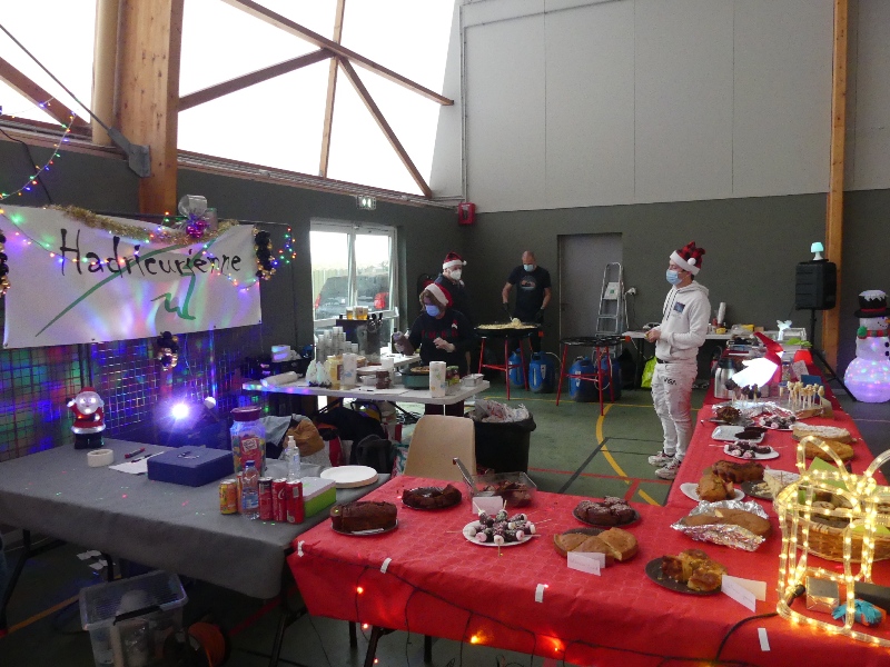 Mais surtout, il y avait l’ambiance de Noël : des sapins, des guirlandes et des rennes illuminés pour décorer la salle, de la tartiflette à midi, de bons gâteaux et crêpes pour le gouter et, bien sûr, le Père Noël. Les enfants avaient répondu nombreux à la proposition d’ateliers de l’Hadricurienne : peinture de décorations de Noël, fabrication de boules ou de plateaux pour des bougies, maquillage, pêche à la ligne : tout était là pour leur plaire et ils n’oublieront pas cette journée !