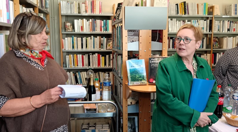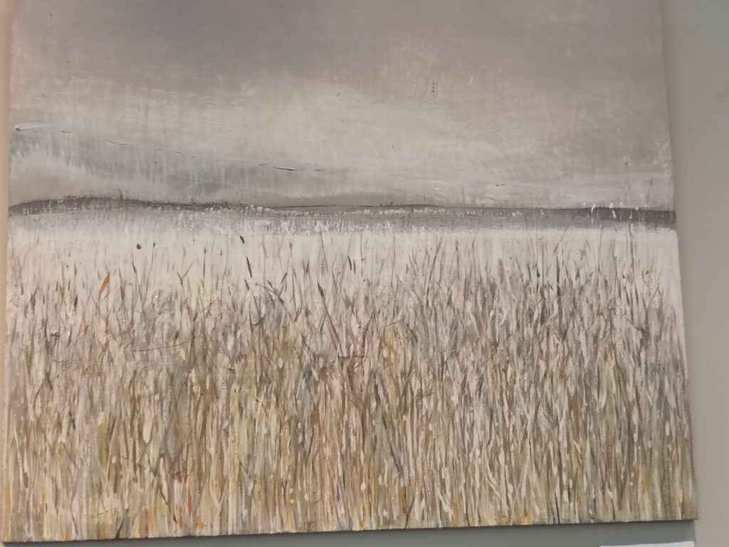 Au moment du vernissage, entourée de nombreux amis, Valérie Aguer a particulièrement apprécié la proximité des livres et de la peinture, deux arts qui se complètent parfaitement. Elle a également commenté quelques-uns de ses tableaux, comme Louise prend l’avion, (cf ci-dessous), résultat d’une sensation ressentie au cours d’un trajet vers l’aéroport en automne, ce qui nous a un peu éclairés sur ce qu’elle appelle sa peinture d’instinct.